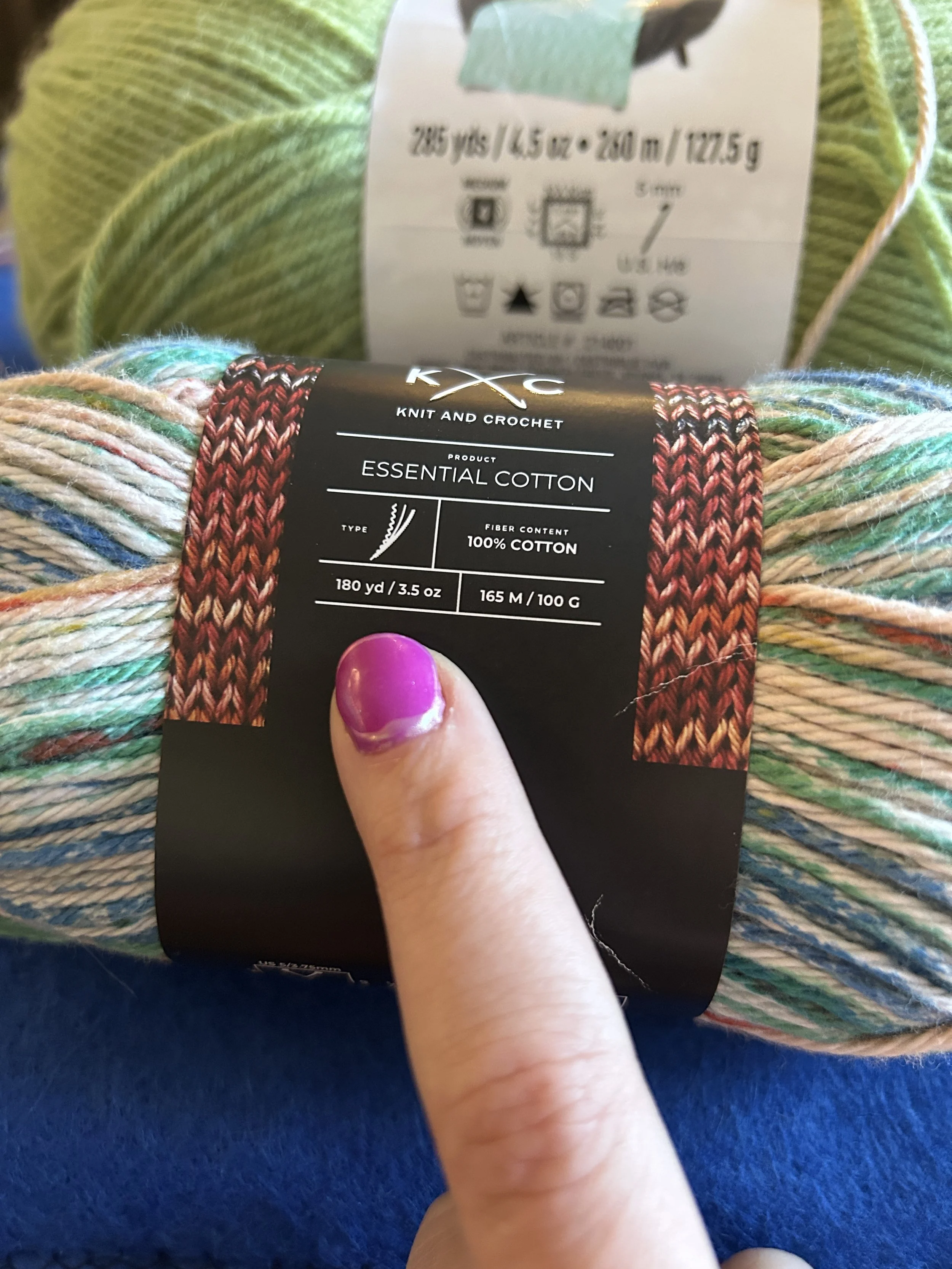 When selecting yarn keep in mind that if the size is smaller there will be less yardage on the ball. This yarn is a size 3 and has 180 yards of material.